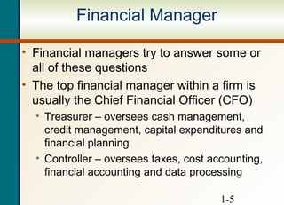 Accountants dont add value to business. Description: Introduction To Corporate Finance Key Concepts and Skills Know the basic types of financial management decisions and the role of the financial manager Know the Introduction to Business Finance.ppt from BUSINESS A 4102 at Polytechnic University of the Philippines. KEY CONCEPTS AND SKILLS. Introduction to Finance. It introduces Cash flow. Chapter 1: Introduction to corporate financeCorporate FinanceRoss, Westerfield & Jaffe.